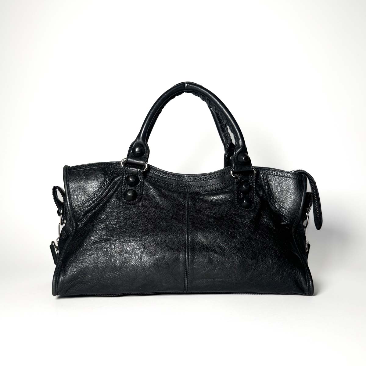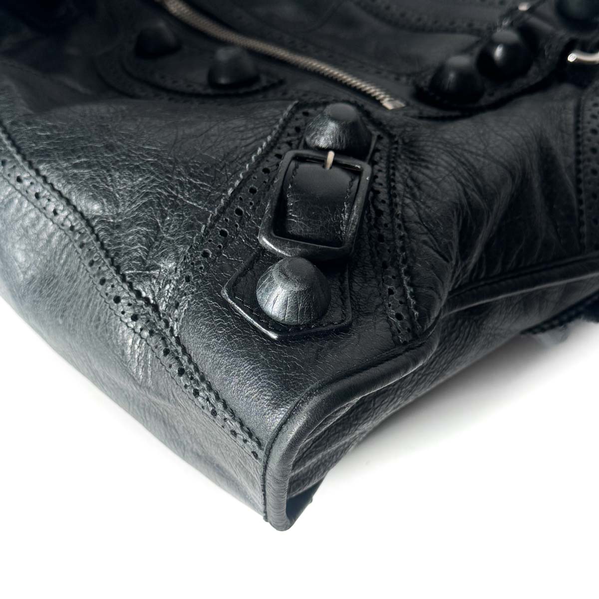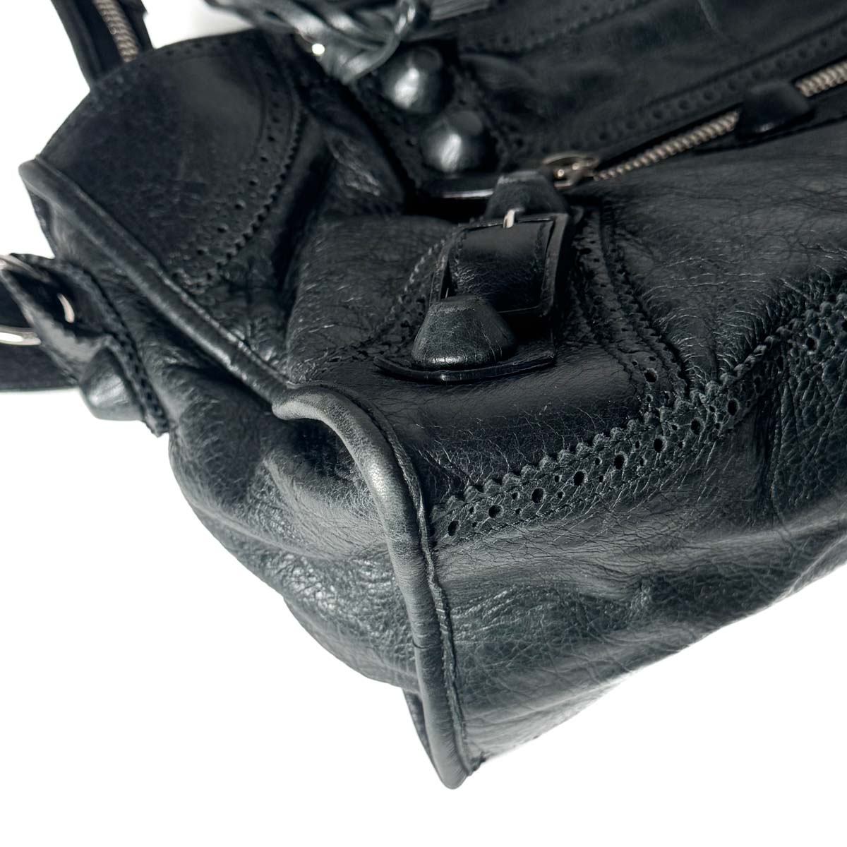 This Balenciaga Brogue City in black is a refined twist on the houseโs iconic City bag.