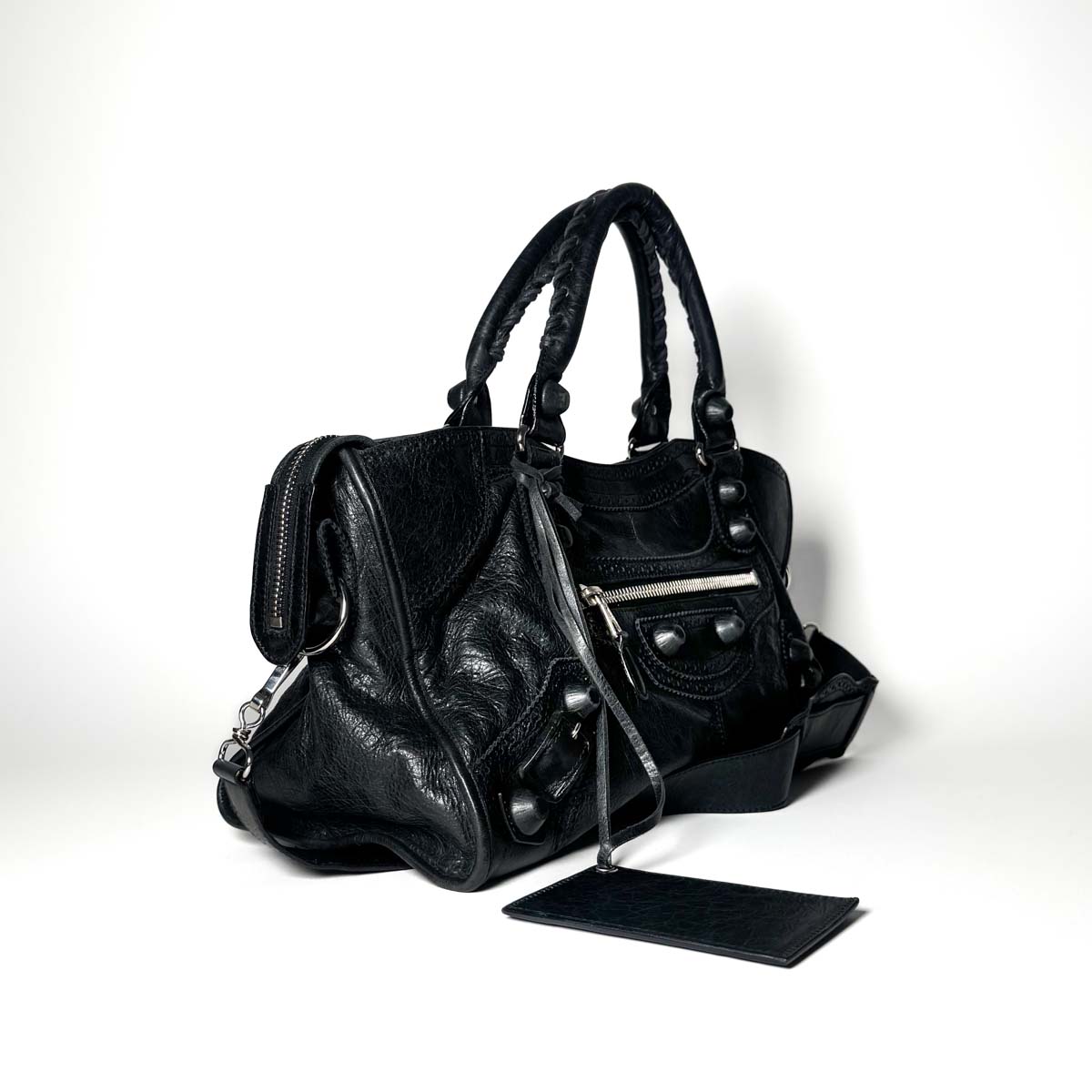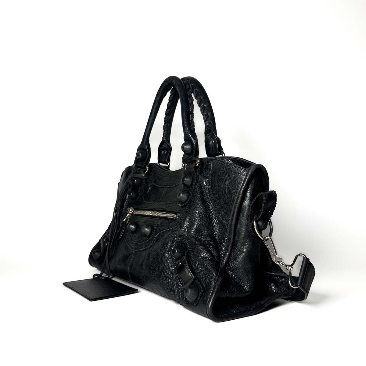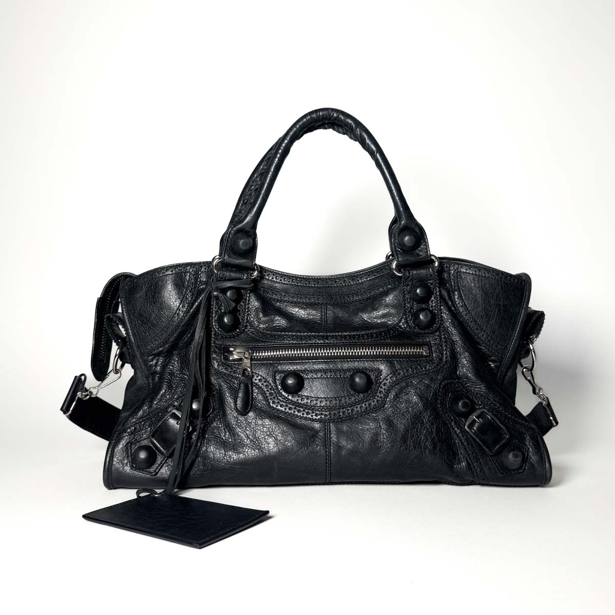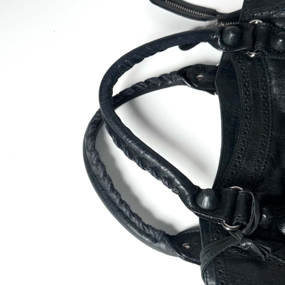 This Balenciaga Brogue City in black is a refined twist on the houseโs iconic City bag.