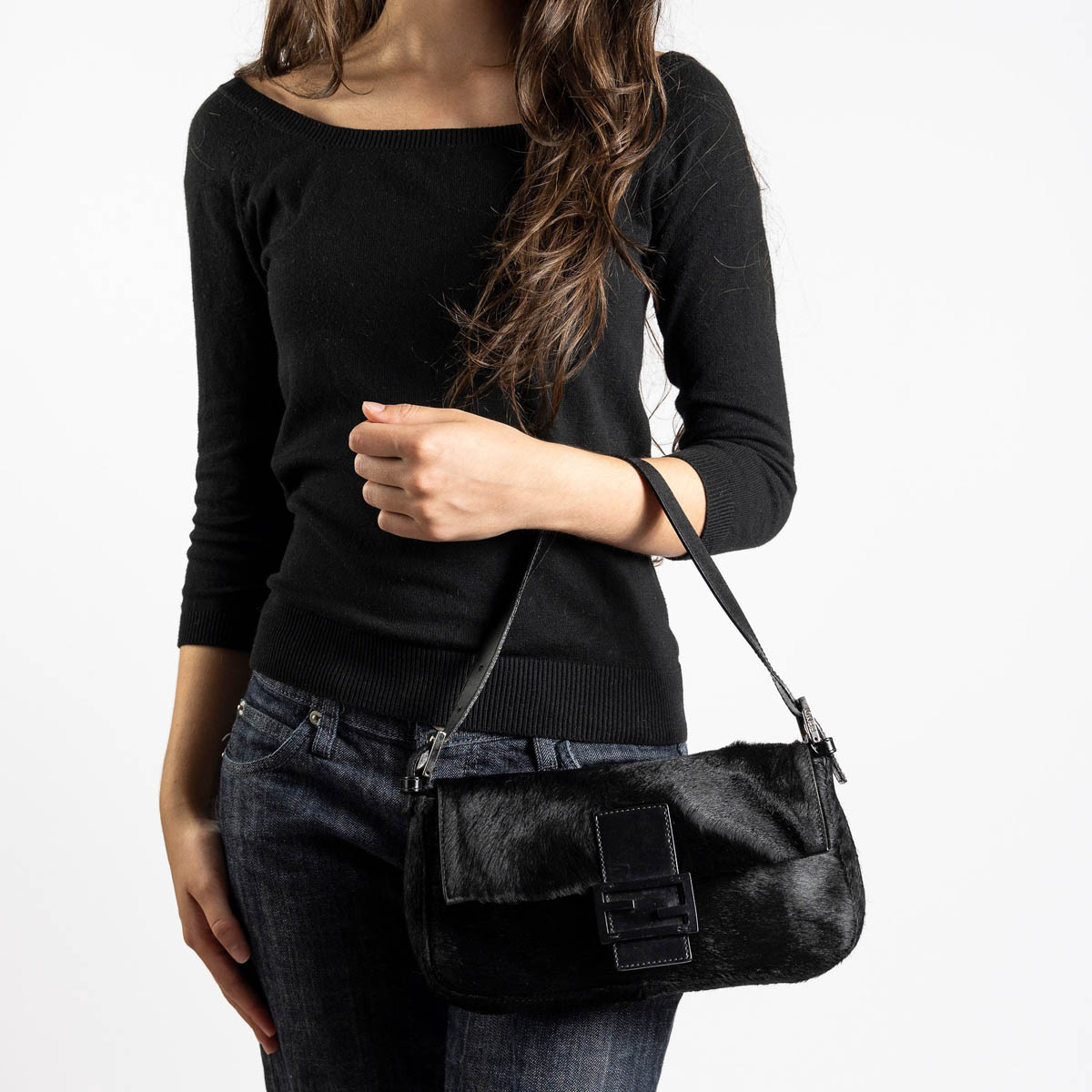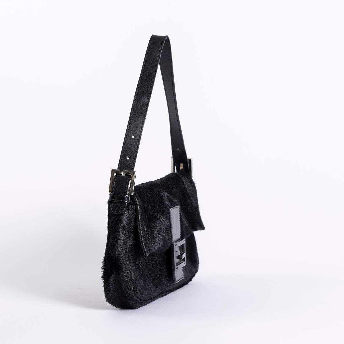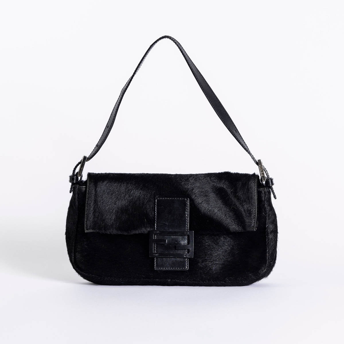 This gorgeous Fendi Pony Hair Black Baguette is a vintage design that combines luxurious black ponyhair with sleek silver-tone hardware.