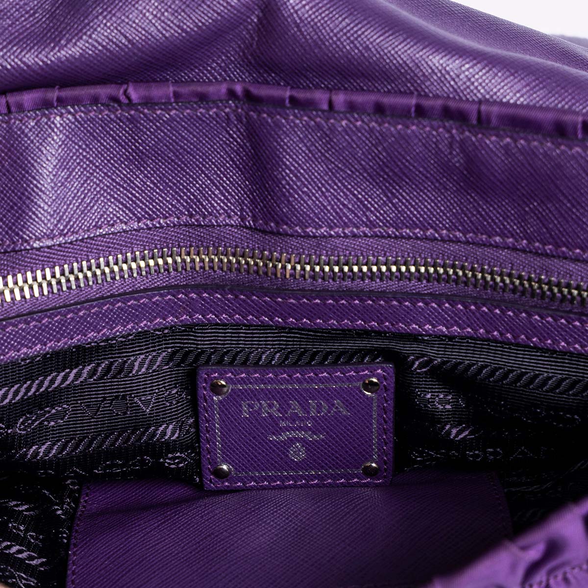 This Prada is crafted in rich purple Tessuto Gaufre β a signature ruched nylon.