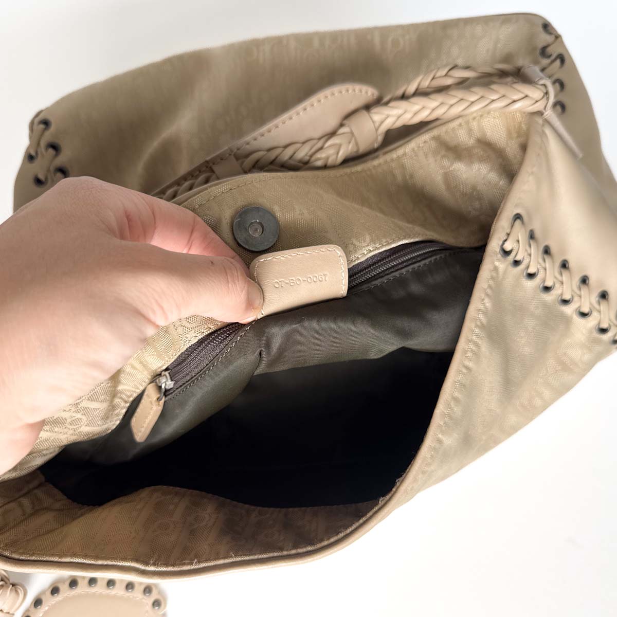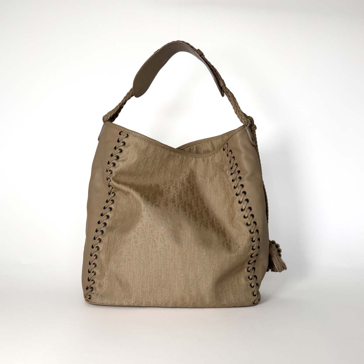 – Taupe Diorissimo monogram canvas exterior with leather trim