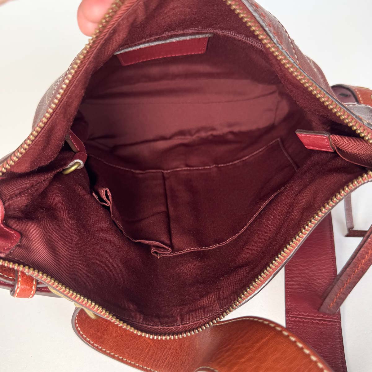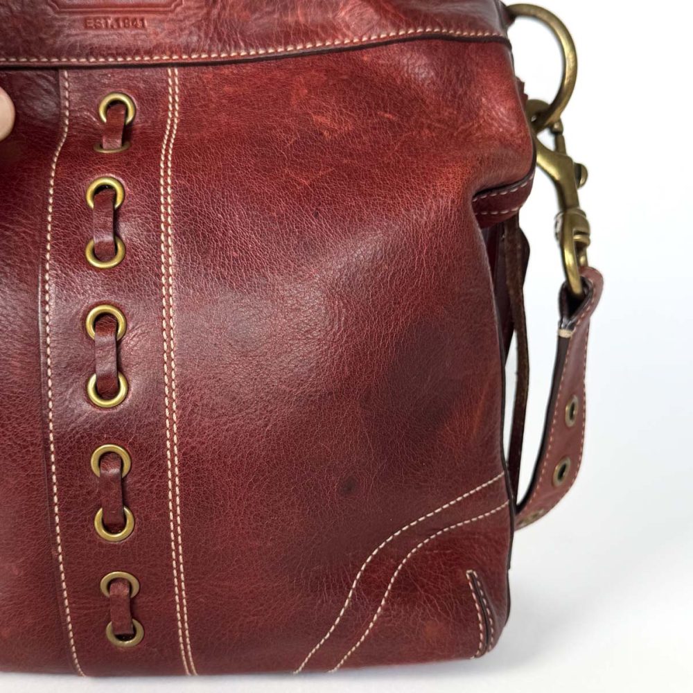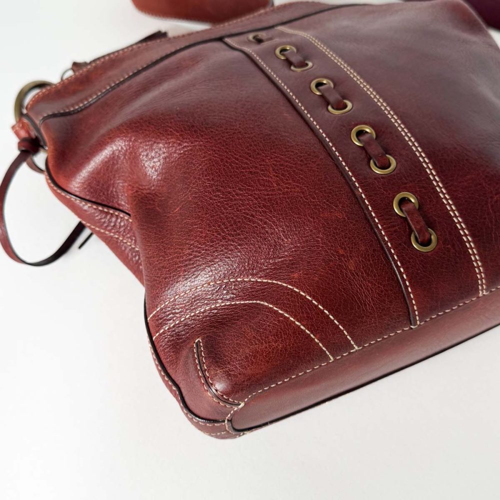 – Adjustable leather shoulder strap with brass hardware
